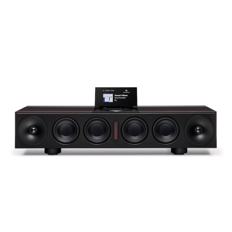 Zes woofers (voor-, achter- en neerwaarts gericht), twee midrange-drivers en twee hoogfrequente wave-guide drivers worden aangestuurd door een 300-watt DSP-versterker. Voor diepe bassen, grote dynamiek en verfijnde details.
